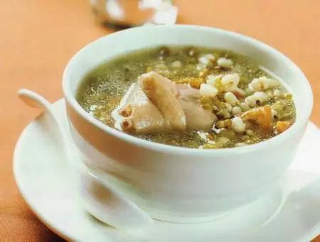 做法:鸭腿用水氽烫后,冲洗干净;;然后将氽烫过的鸭腿、淘洗净的薏仁、绿豆、陈皮一起放入砂锅中,加足量水,大火煮二十分钟,去浮油,再用小火煮两个小时,最后加少许盐调味即可。
